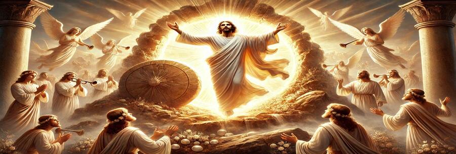 After his crucifixion and burial, Jesus' body lay in the tomb, guarded by Roman soldiers. Three days after his death, on Sunday morning, women disciples, including Mary Magdalene, go to the tomb to embalm his body. To their great surprise, they found the stone rolled away and the tomb empty. Suddenly, two men in bright clothes appeared and said to them: "Why are you looking among the dead for the living One? He is not here, but has risen" (Luke 24:5-6). These words announce the glorious reality of the Resurrection.