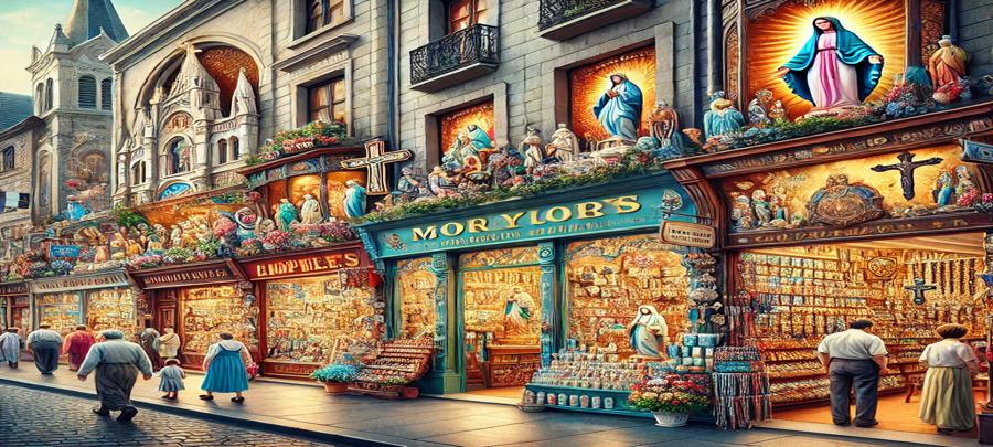 The religious shops at Lourdes play a central role in the pilgrimage experience. They offer pilgrims objects of piety that extend their spiritual encounter with the Virgin Mary and with God. As well as being part of the local economy, these shops are also places where spirituality takes tangible form, allowing everyone to leave with a strong symbol of faith and devotion.