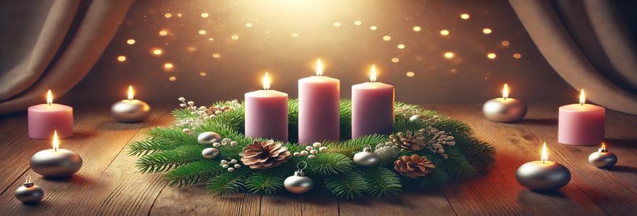 The pink colour of the candle is symbolic: it marks a pause within the purple tones of the wreath, which evoke penitence and reflection. This pink light indicates that the preparation is almost complete, that joy is at hand, and that Christmas is approaching. Lighting this third candle is an act of celebration, a moment when we can express the joy of expectation and rejoice together.