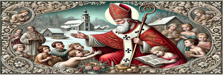 The legend of the three young girls: one of the most famous stories tells how Nicholas saved three poor young girls from a tragic fate. Their father, unable to provide them with a dowry to marry, planned to sell them into prostitution. Nicholas learned of their plight and secretly deposited bags of gold in their home, enabling them to marry with dignity. This gesture of generosity is the origin of the tradition of anonymous gifts, associated with Saint Nicholas and, later, Father Christmas.