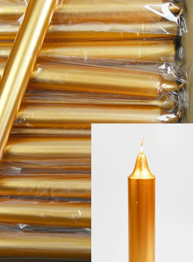 Box of 130 prayer Candles - Gold. Size 20 cm. These prayer candles don't drip. Made in France.