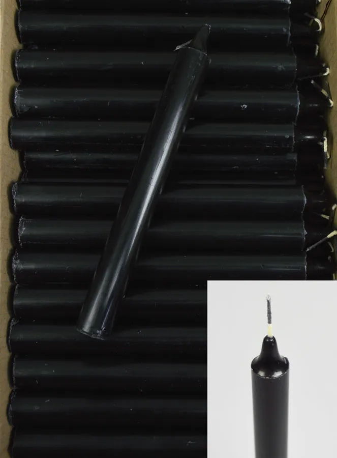 Box of 130 Solid Colour Candles - Black. Size 20 cm. These black prayer candles don't drip. Made in France.