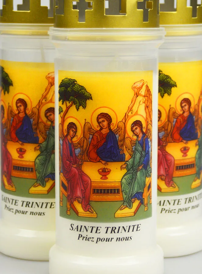 Batch of 3 Grave Lantern - Holy Trinity. These outdoor candles are designed to burn 60 hours. Made in France.