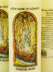 Set 3 Sanctuary Candles Our Lady of Lourdes with Prayer (in French!) on the back - 17.5cm. This novena candle has an image & prayer of Our Lady of Lourdes. A novena candle is a candle that remains lit for nine consecutive days. It is prayed during these nine days and allows you to find serenity, peace and to give thanks to God through the intercession of the Saints. Pray to the Blessed Virgin of Lourdes, invoked as consoler of the afflicted, thanks to the prayer (in French!) on the back of the candle. Light this candle in your prayer corner and create a serene place for your prayer. Feast day: 11 February. 100% vegetable oil candle. Burns for 9-10 days.