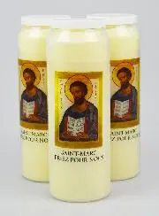 3 St. Raphael Archangel Sanctuary Candles. These candles depicting Saint Raphael are made out of 100% vegetal wax. Burn time : between 9 and 10 days each.