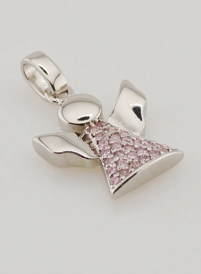 Baptism Medal Guardian Angel Silver and Pink Zircons - 15 mm, this pretty children's pendant is made of 925 sterling silver and pink zirconium oxides. Height: 15 mm.
