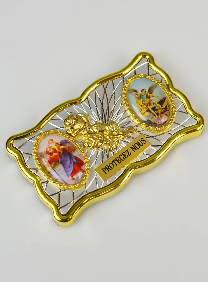 Car Badge Magnet St Christopher & St Michael the Archangel, this pretty aluminium car badge (magnetic and self-adhesive) features the medals of St Christopher & St Michael the Archangel, so they can watch over all your journeys!