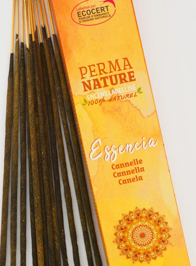 Premium Incense Cinnamon - Ecocert Label, these premium quality incense sticks are made from 100% natural ingredients, from the composition of the product to its packaging. Ecocert label (European certification for eco-responsible products). Box of 12 to 15 sticks, weight 15g.