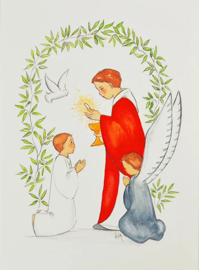 Communion Card - Boy First Communion. Lovely first communion card made by Armelle (Christian designer) in exclusivity for our shop. Size 10 x 7 cm.