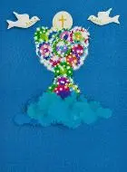 Communion Picture - Thank You Jesus - Pink. Pretty first communion picture created by Florence-Anne (Christian designer) in exclusivity for our shop. Size 10 x 7 cm. Text in French.