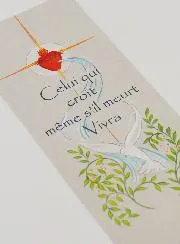 Communion Prayer Bookmark. Pretty prayer bookmark (prayer in French) made by Armelle (Christian designer) in exclusivity for our shop. Size 15 x 6 cm.