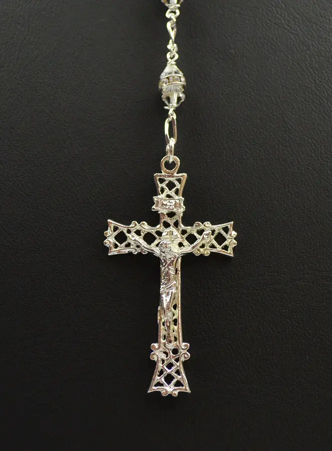 Crystal Set & 925 Solid Silver Rosary. Beautiful 925 solid silver rosary with crystal. Beads size: 6mm. Size 52cm. Cross size 4cm. Cross medal size 16mm. A jewel of great delicacy handcrafted in Italy by our craftsman jeweler. Delivered in its box.