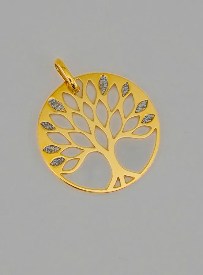 Gold Medal Tree of Life Openwork with Glitter - 16mm, this superb openwork Tree of Life pendant is made of 375 gold (9 Karat) with a glitter effect on the upper leaves. Diameter 16mm.