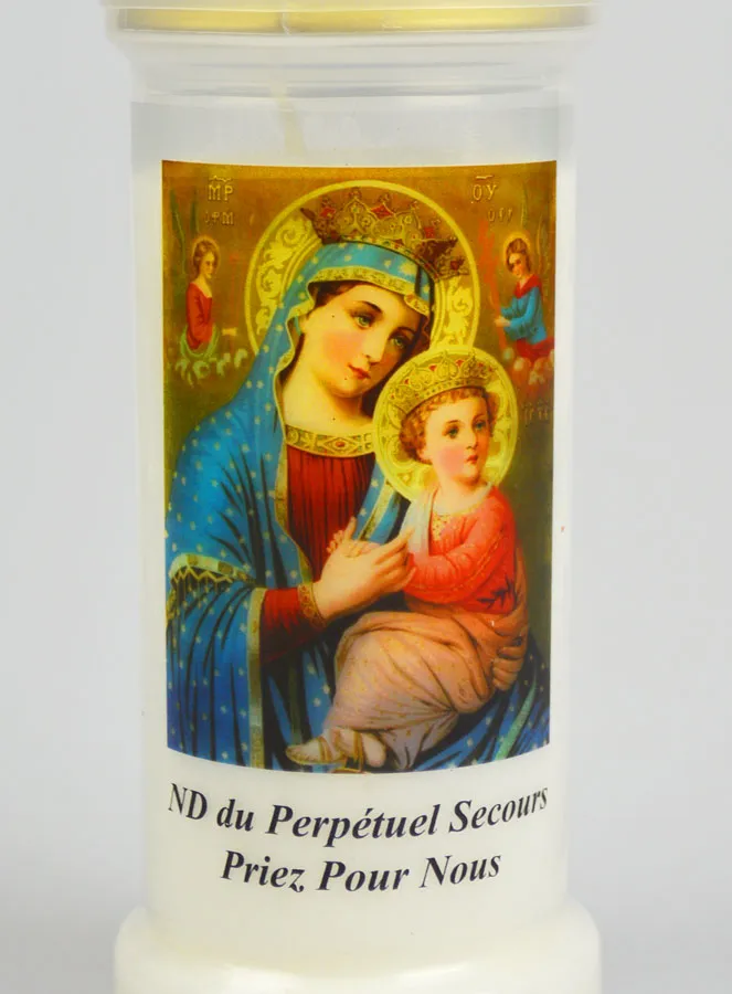 Grave Lantern - Our Lady Help of Christians. This candle can burn up to 60 hours. Made in France.