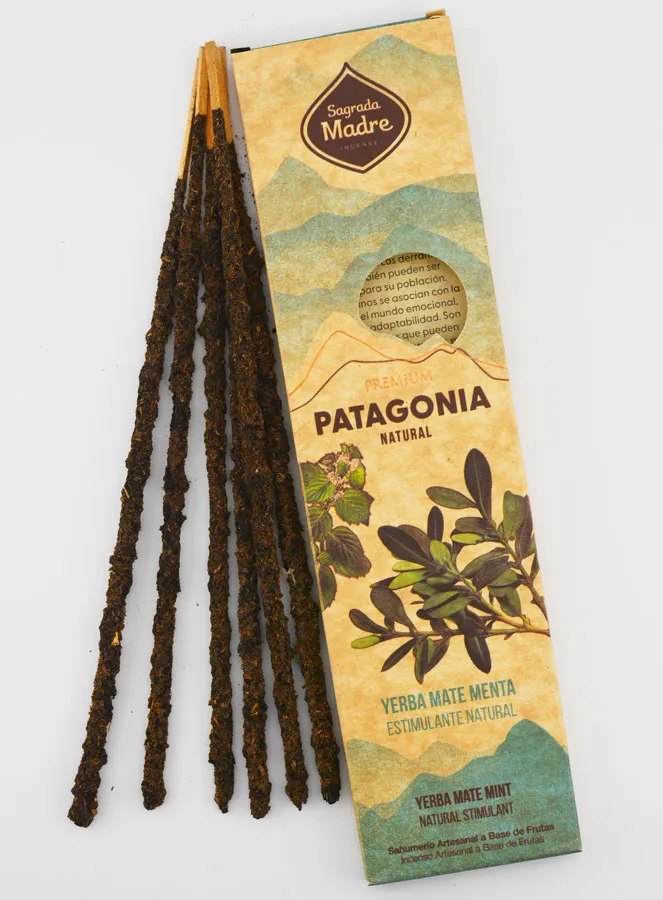 Yerba Mate and Mint Handmade Incense - Patagonia Premium, these premium quality incense sticks from the Patagonia range are handmade from 100% natural ingredients in Argentina. They are certified eco-responsible and vegan. Box of 6 sticks, burning time approx. 1 hour per stick.