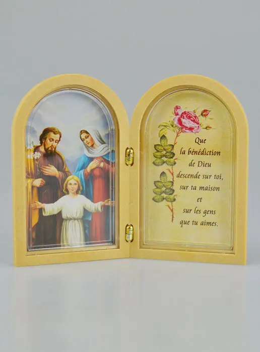 Holy Family of Nazareth Diptych Icon + Prayer. Pretty wood religious icon. Size 12 x 9,5 cm.