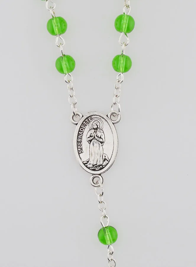 Lourdes Rosary with Green Crystal Pearls - 50cm