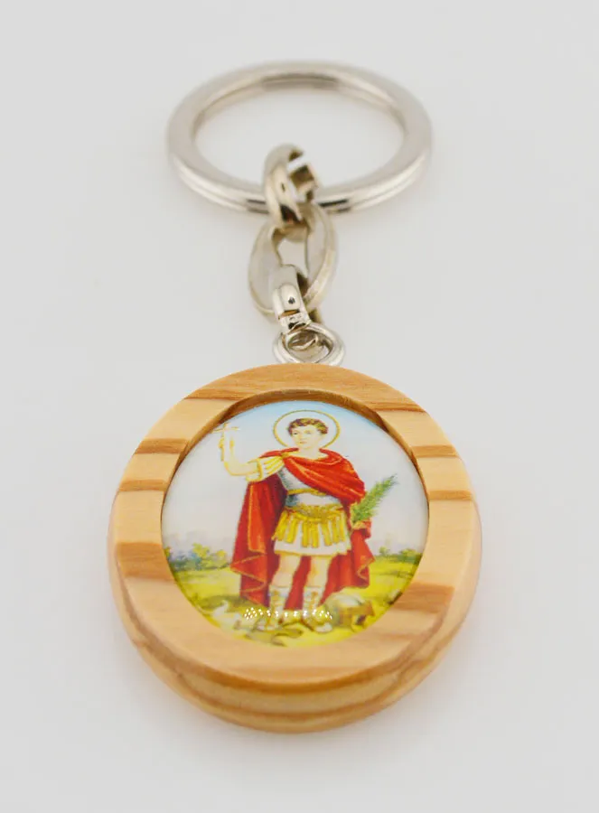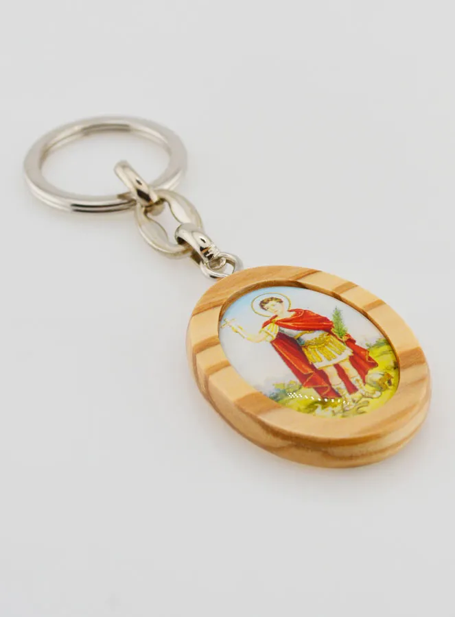 Olive wood key ring - Saint Expeditus, this pretty olive wood key ring features a resin plate with the image of Saint Expeditus.