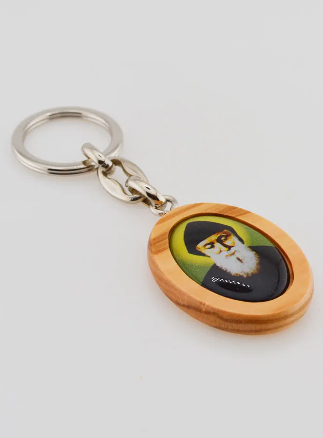 Olive wood keyring - Saint Charbel, this pretty olive wood keyring features a resin plate with the image of Saint Charbel. Saint Charbel, patron saint of Lebanon, is known for his healing powers, and is invoked to obtain the grace of a cure through his intercession. He was beatified in 1965 and canonised in 1977 by Pope Paul VI.