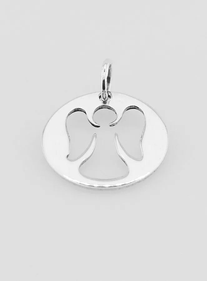 Openwork Silver Medal 15mm - Guardian Angel, this pretty pendant is made of 925 Sterling silver and represents the Guardian Angel. Diameter 15mm, round eyelet.
