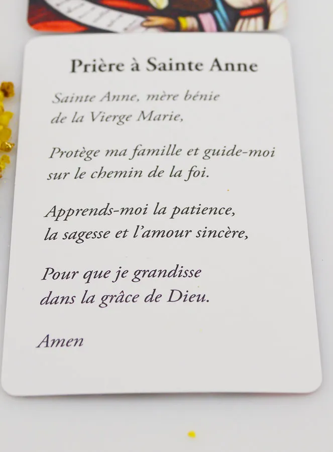Saint Anne Religious Incense Set and Prayer (in French), this incense set includes a 50g box of Saint Anne incense grains, accompanied by the prayer (in French) to Saint anne.
