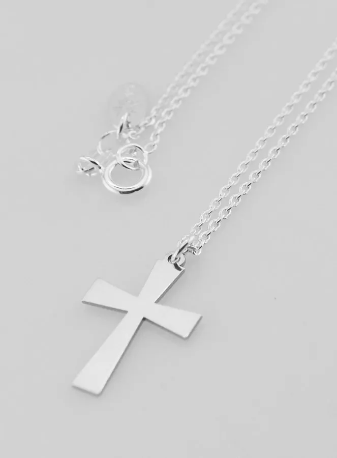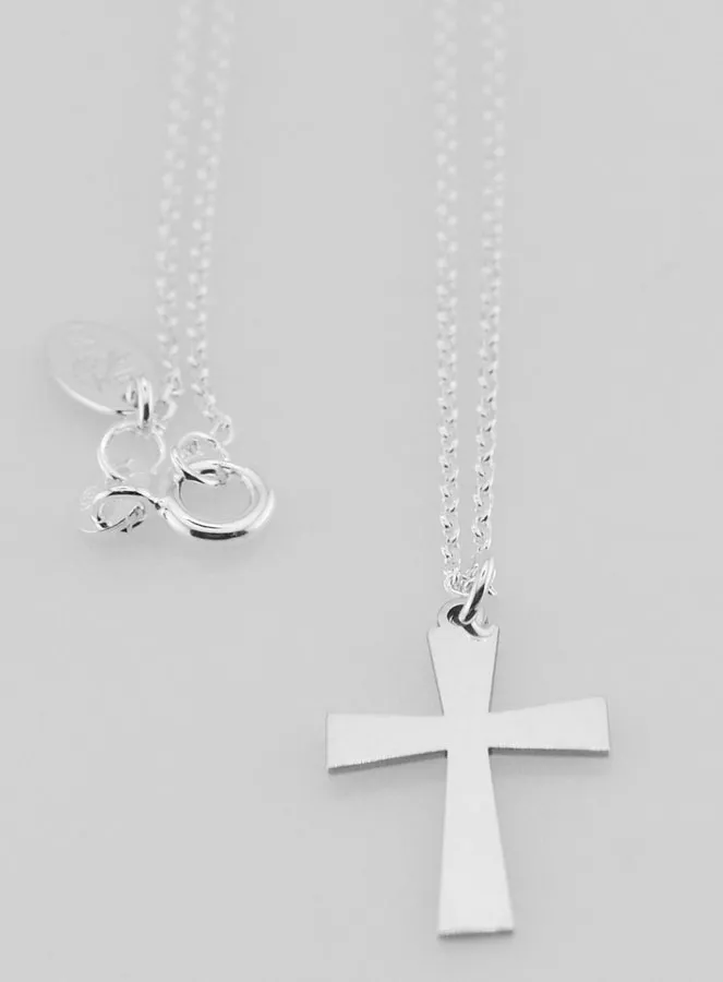 Religious necklace and cross pendant, this pretty chain and pendant set is in 925 sterling silver. The convict mesh chain is 42cm long and the cross pendant is 20 x 13mm.