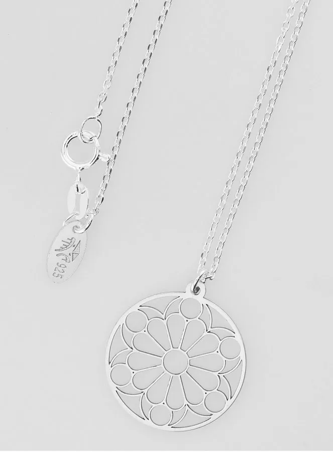 Religious Necklace & Stained Glass Pendant - 925 Silver, this pretty chain + pendant set is made of 925 sterling silver. The anchor chain measures 42cm and the pendant has a diameter of 20mm.