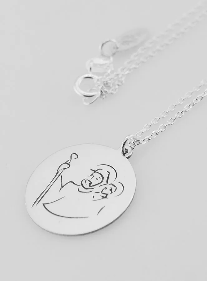 Religious Silver Necklace Engraved Saint Christopher - 20mm