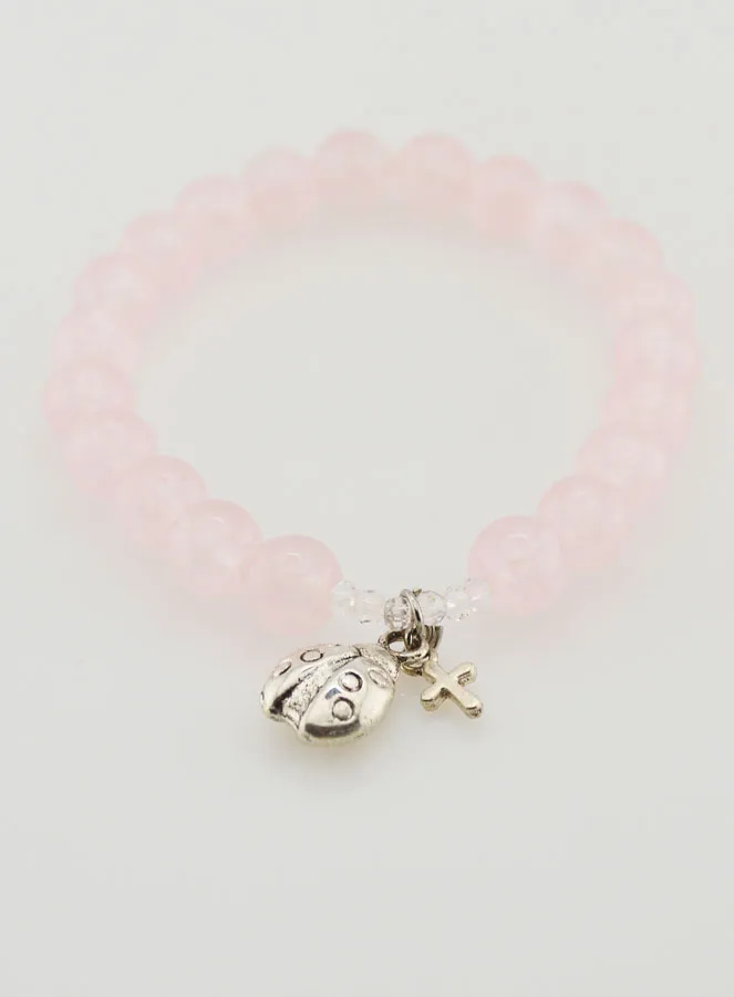 Rose Quartz Gemstone Bracelet and Ladybug - 8mm