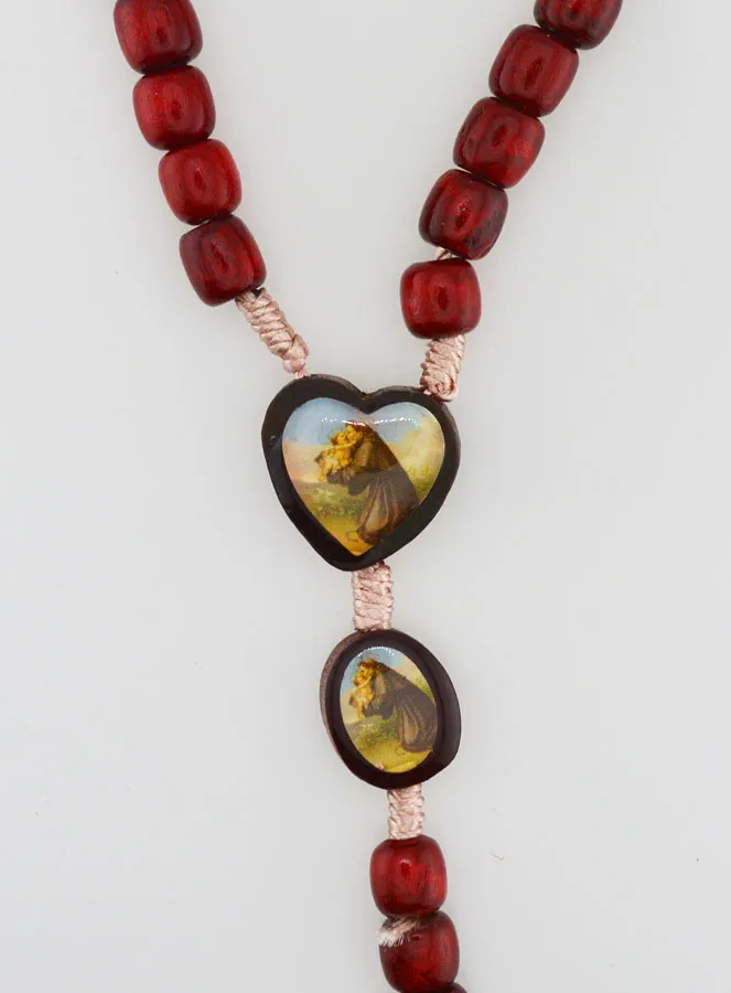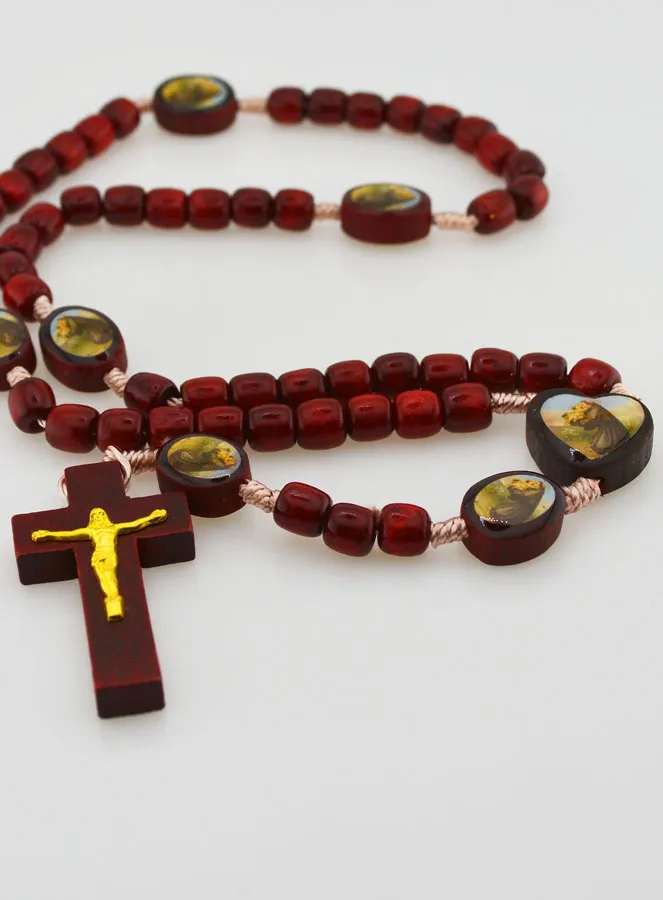 Saint Anthony Rosary - Wooden Beads, this rosary is made up of 5 decades wooden beads mounted on a cord and separated by Our-Father-beads depicting Saint Anthony.