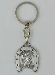 Saint Christopher Horseshoe Key Chain. Beautiful silver metal keychain. Size 3 x 3 cm.
