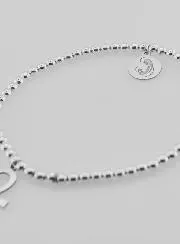 Silver Ball Bracelet - Egyptian Cross and Virgin Mary with Child, this elegant silver ball bracelet is made up of 3mm silver beads mounted on extra-strong elastic and 2 silver charms: an Egyptian cross (20mm) and a medal of the Virgin Mary and Child (10mm). Length 19cm.