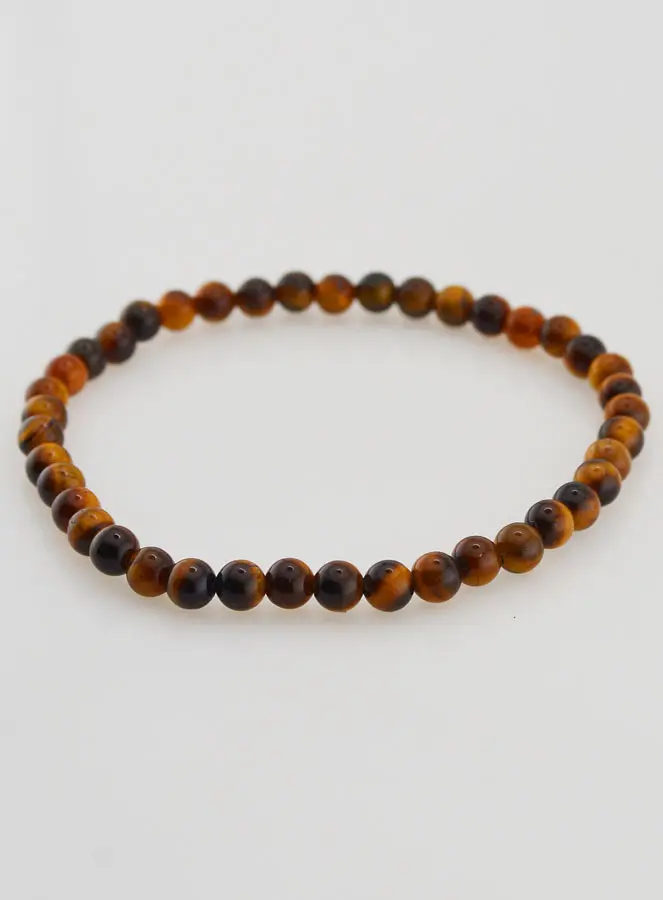 Natural Tiger Eye Stone Bracelet - 4mm, genuine tiger eye stone from South Africa, AB grade, 4mm diameter beads mounted on extra-strong elastic band size 16-18cm, 40 beads on average per bracelet.