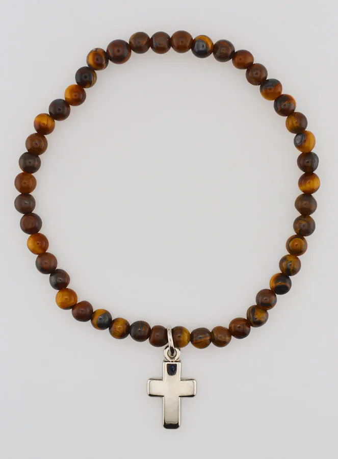 Tiger's Eye Gemstone Bracelet 4mm and Cross
